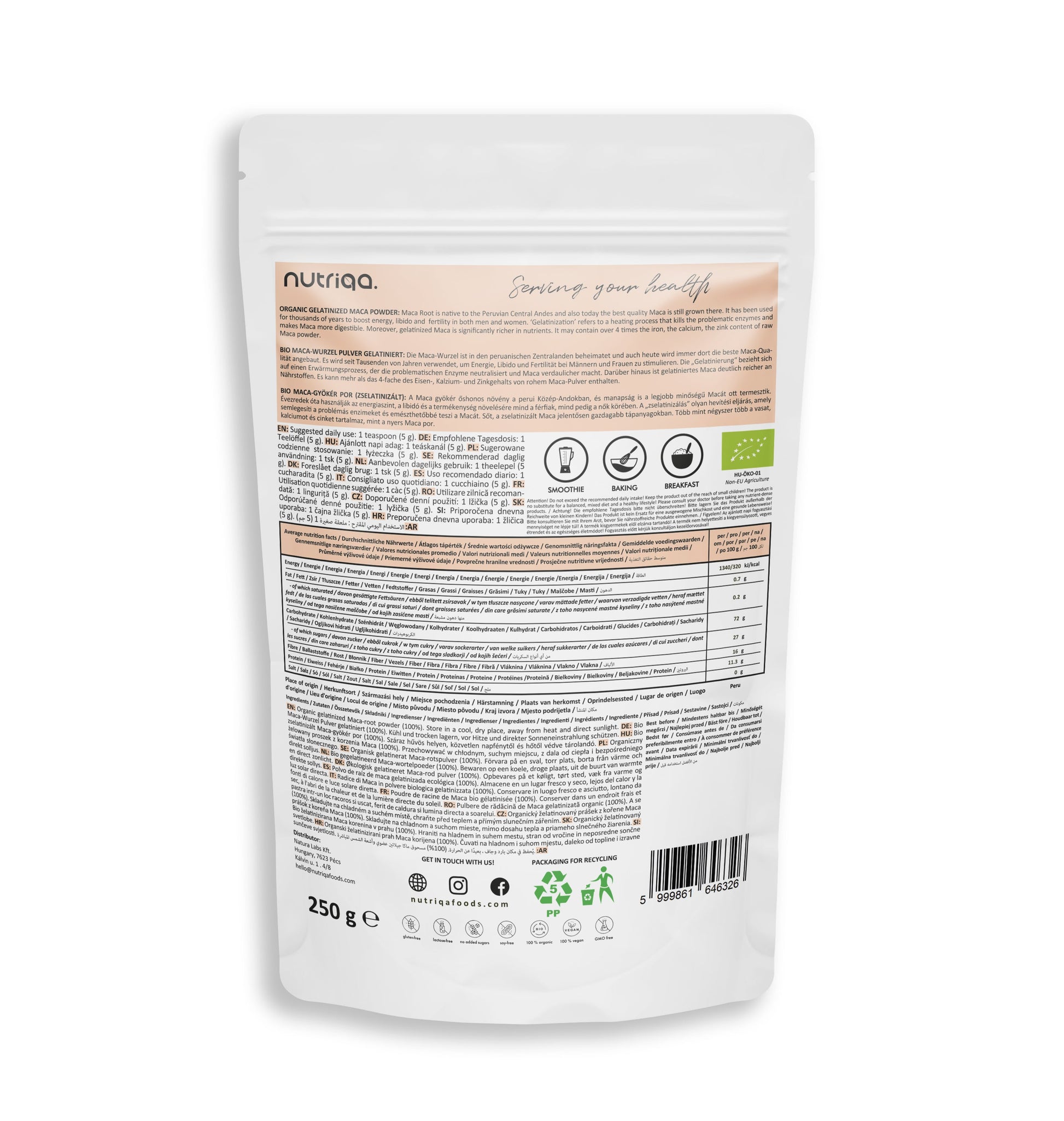 Why do we recommend using gelatinized Maca over raw Maca? Gelatinized Maca does not contain any gelatin. “Gelatinization” refers to a heating process that neutralizes problematic enzymes and makes the Maca more digestible. In fact, gelatinized Maca is significantly richer in nutrients. It contains more than four times the iron, calcium, and zinc of raw Maca powder.