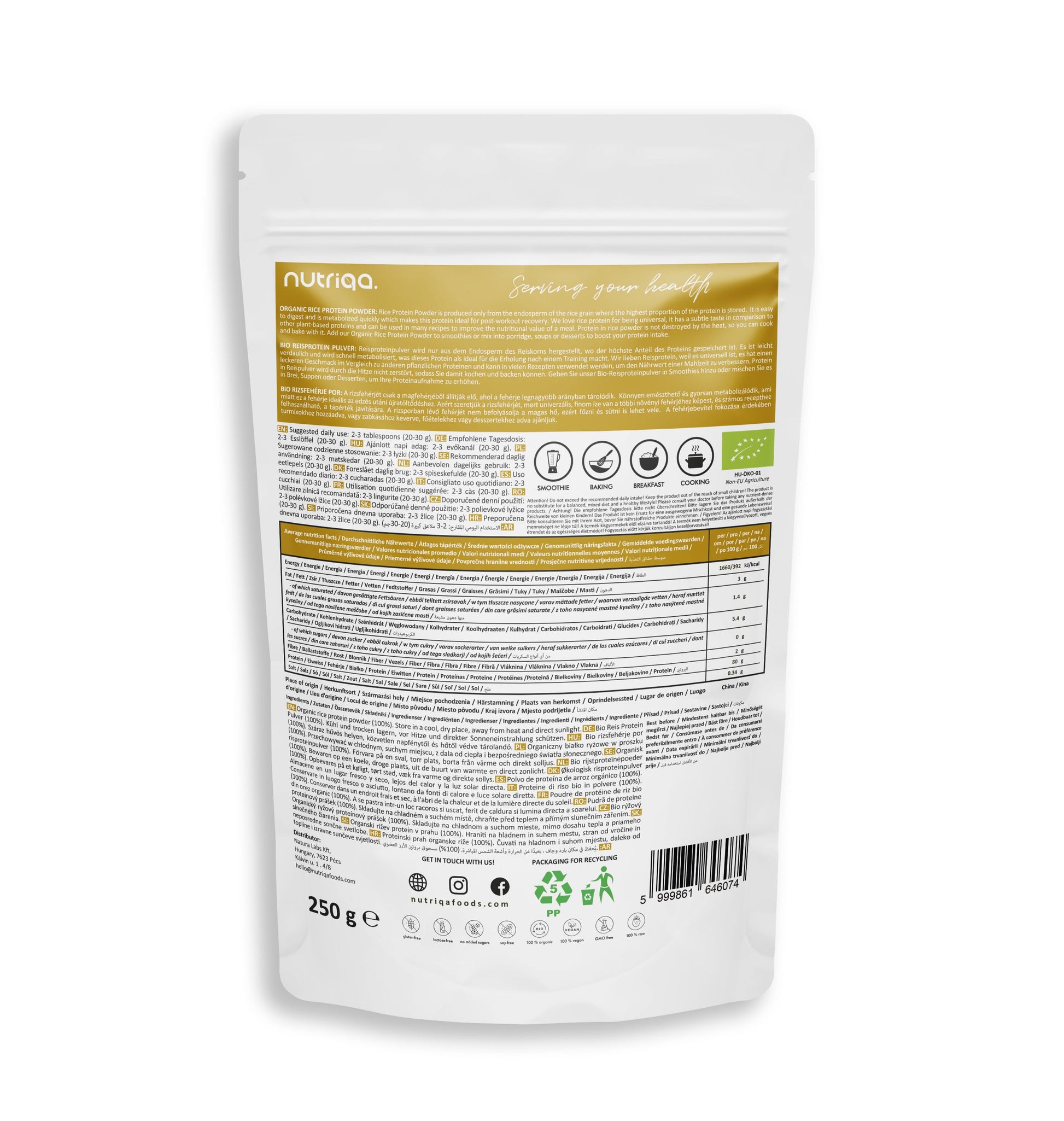 Rice protein is made only from the seed protein, where the highest percentage of protein is stored. Rice protein is becoming increasingly popular as a vegan, cruelty-free alternative to whey protein. According to an 8-week study by the University of Tampa, the results of men who took rice protein after a workout were absolutely comparable to another group of men who consumed whey protein to reduce body fat and increase muscle mass. It is easily digested and quickly metabolized, making this protein ideal for post-workout refueling. We love rice protein because it has a universal, delicate taste compared to other plant-based proteins and can be used in a variety of recipes to improve its nutritional value. The protein in rice powder is not affected by high heat, so it can be cooked and baked with it.