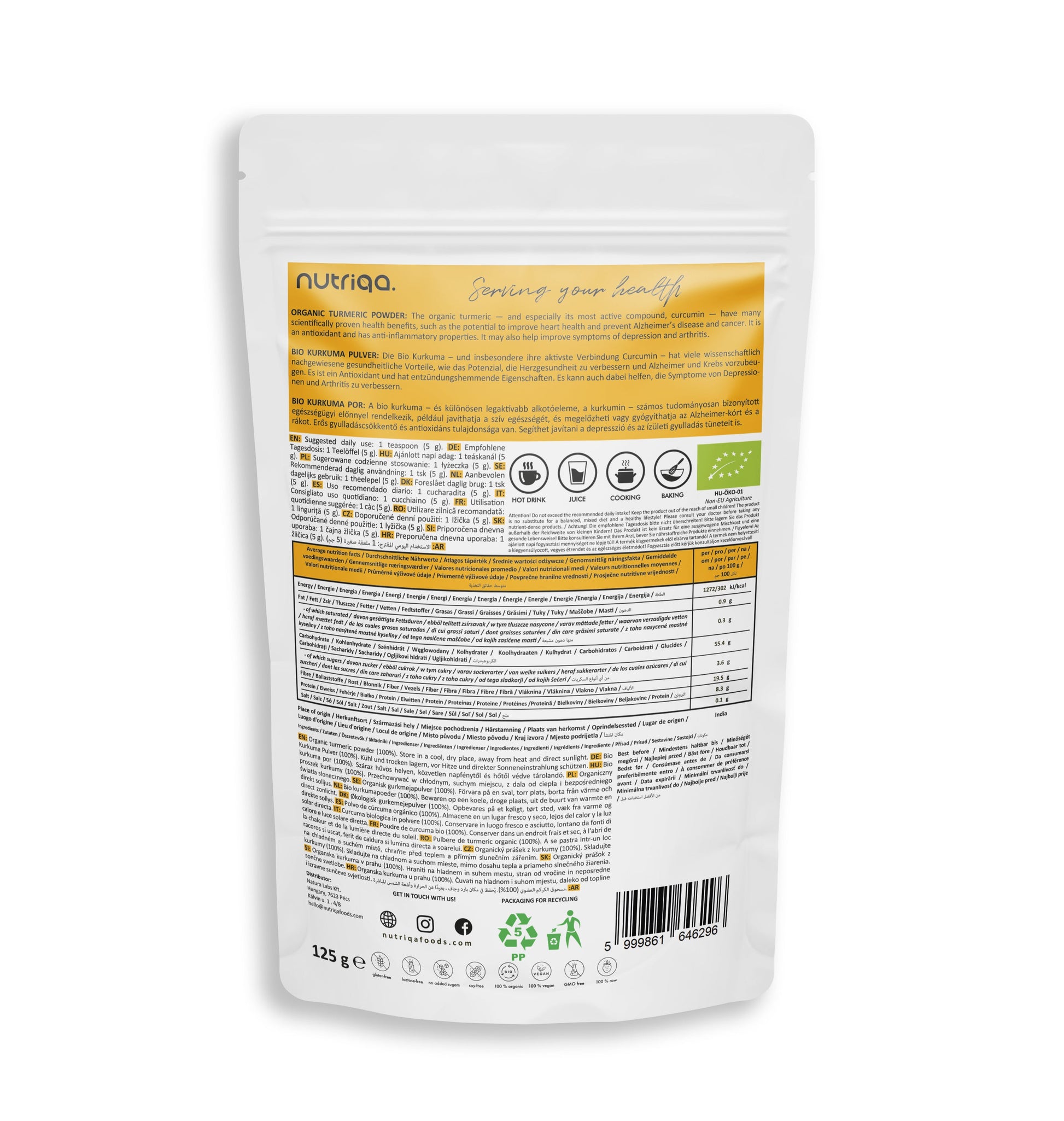 Organic turmeric may improve heart health and prevent or cure Alzheimer's disease and cancer, and has powerful anti-inflammatory and antioxidant properties. It may also help improve symptoms of depression and arthritis. Add it to your favorite smoothie or try our favorite recipes!