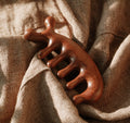 Valódi szantálfából faragják, amely híres nyugtató illatáról és természetes gyógyító tulajdonságairól. Vigyázz az utánzatokra: a piacon sok fésű csak festett műanyag vagy közönséges fa. A miénk valódi szantálfa anyagából készül, ami azonnal felismerhető melegségéről, mintázatáról és földelő illatáról.
